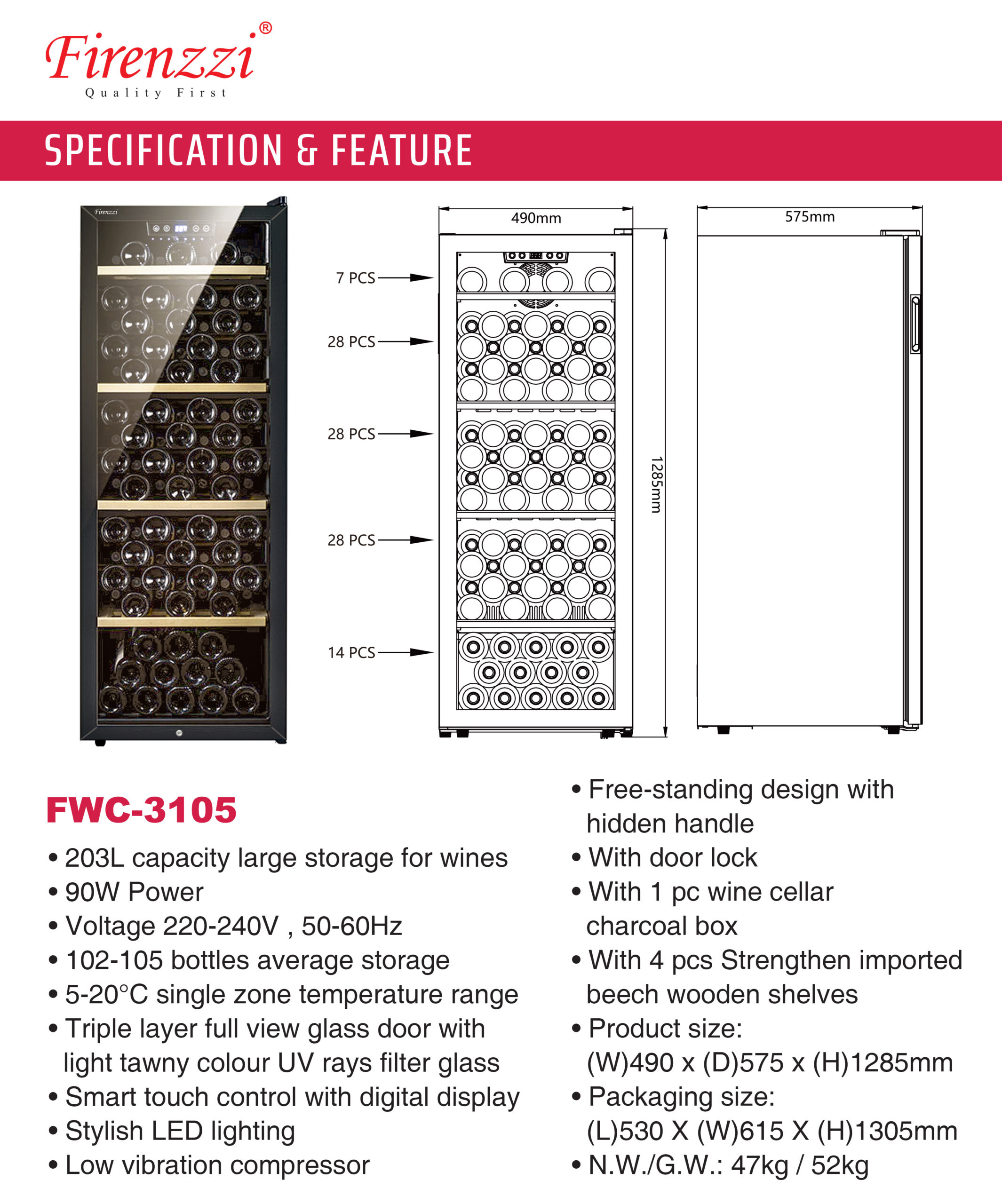 Firenzzi 203L SIingle Temperature Zone Wine Chiller