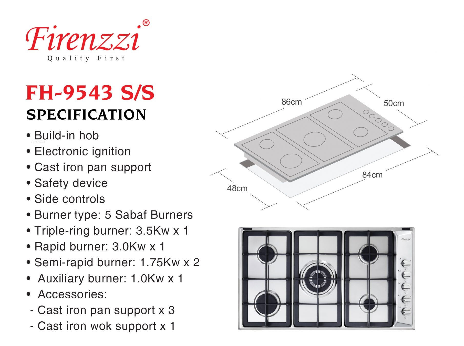 Firenzzi 90cm Stainless Steel 5 Burners Built- in Gas Hob