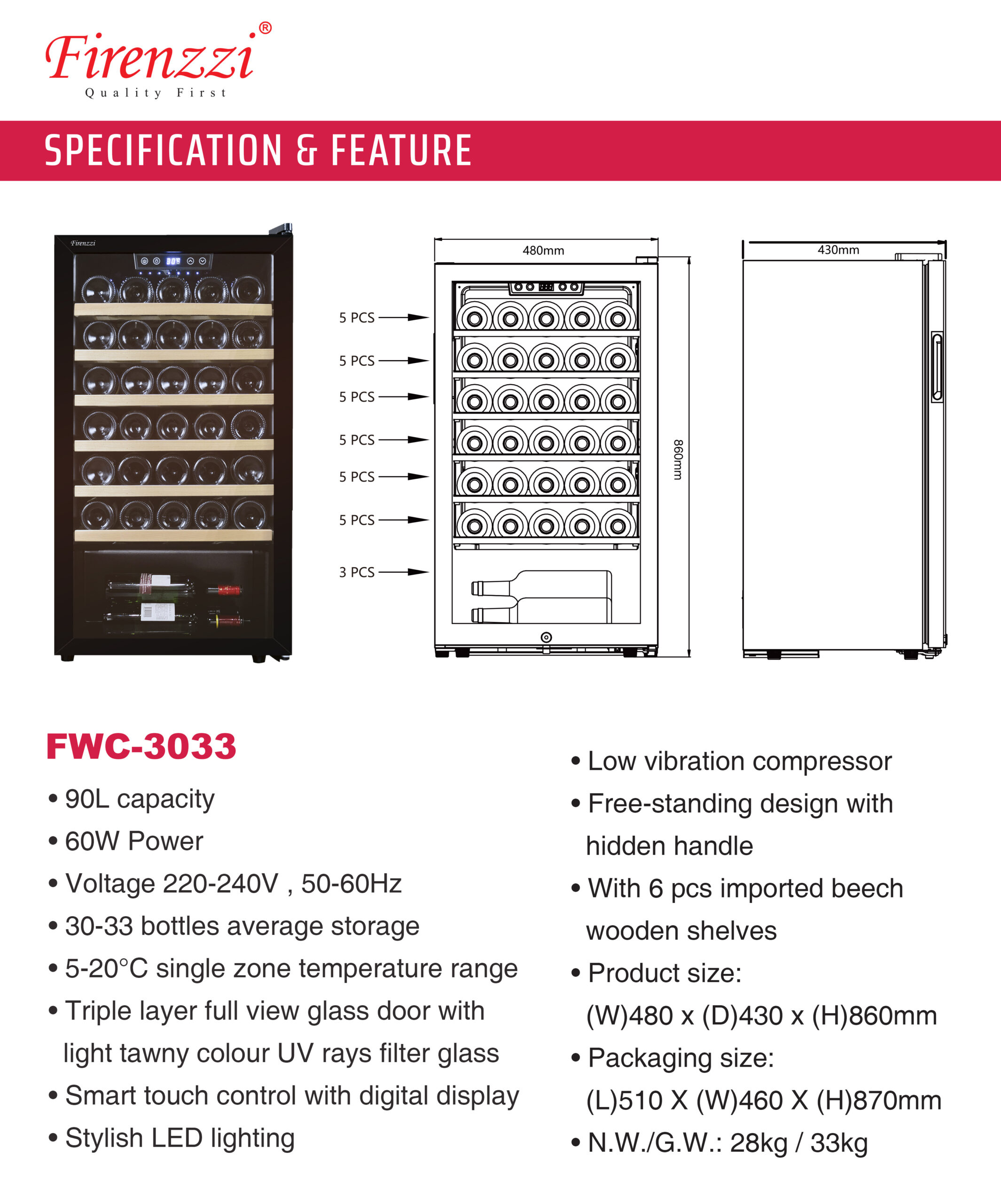 Firenzzi 90L SIingle Temperature Zone Wine Chiller