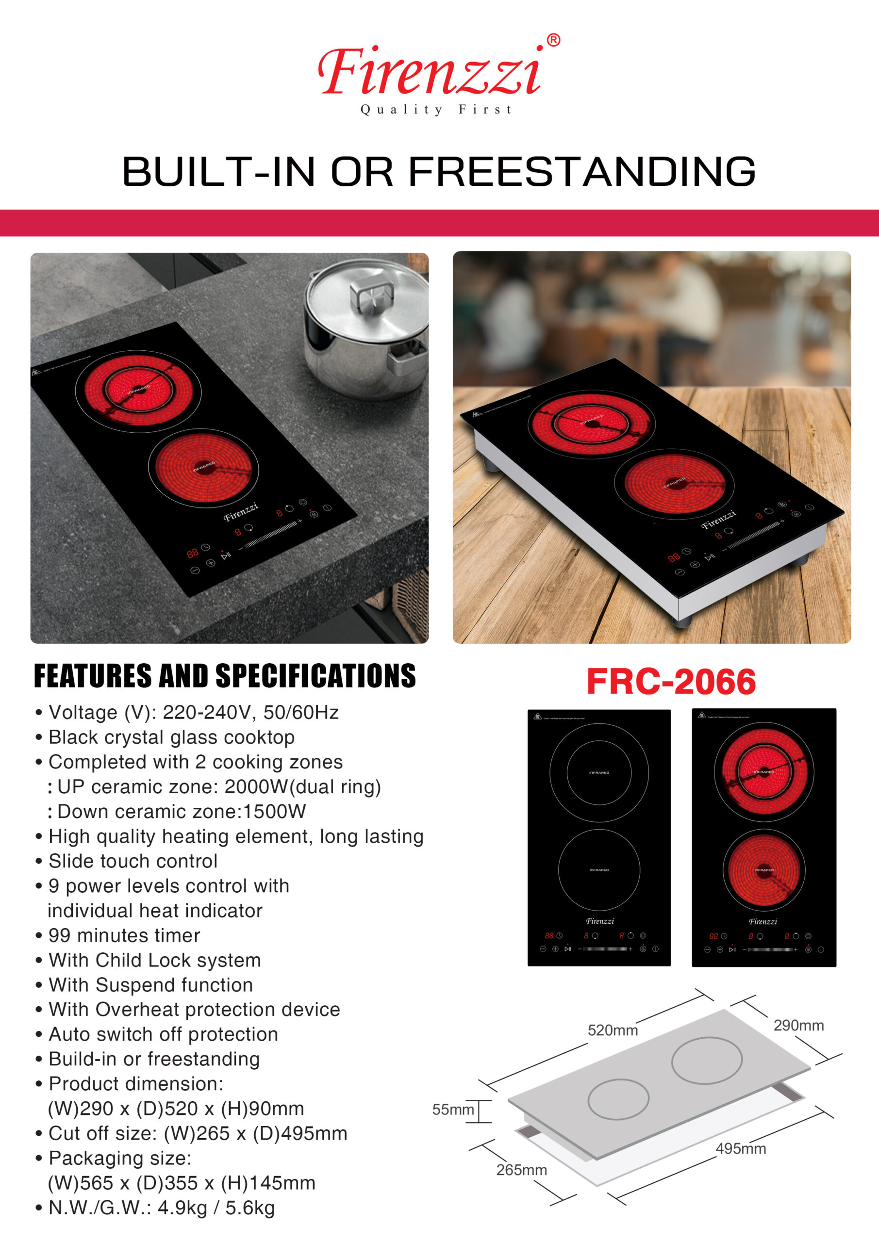 – UP Ceramic Zone: 2000W (Dual Ring)