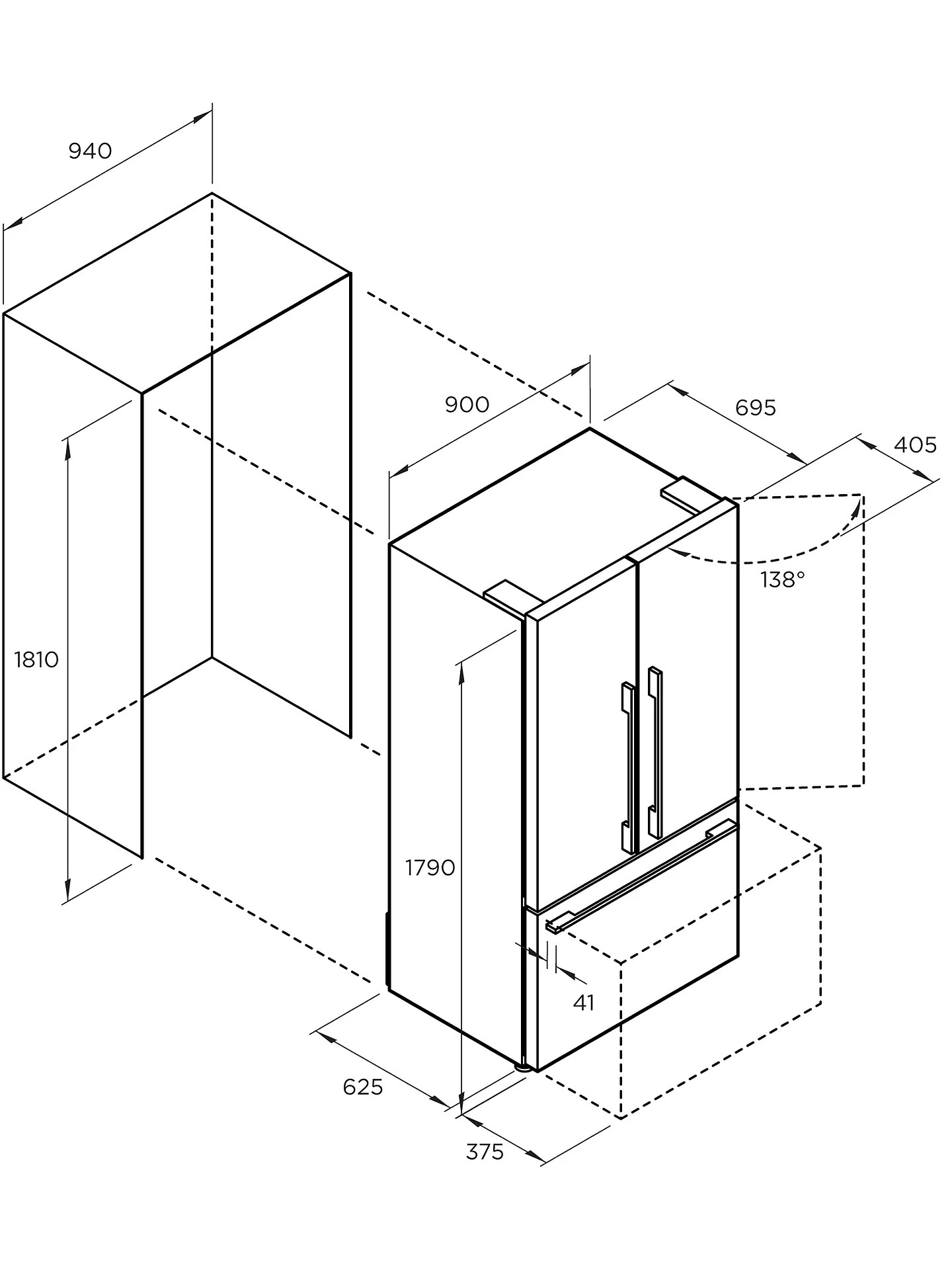 Freestanding French Door Refrigerator Freezer, 90cm, 614L