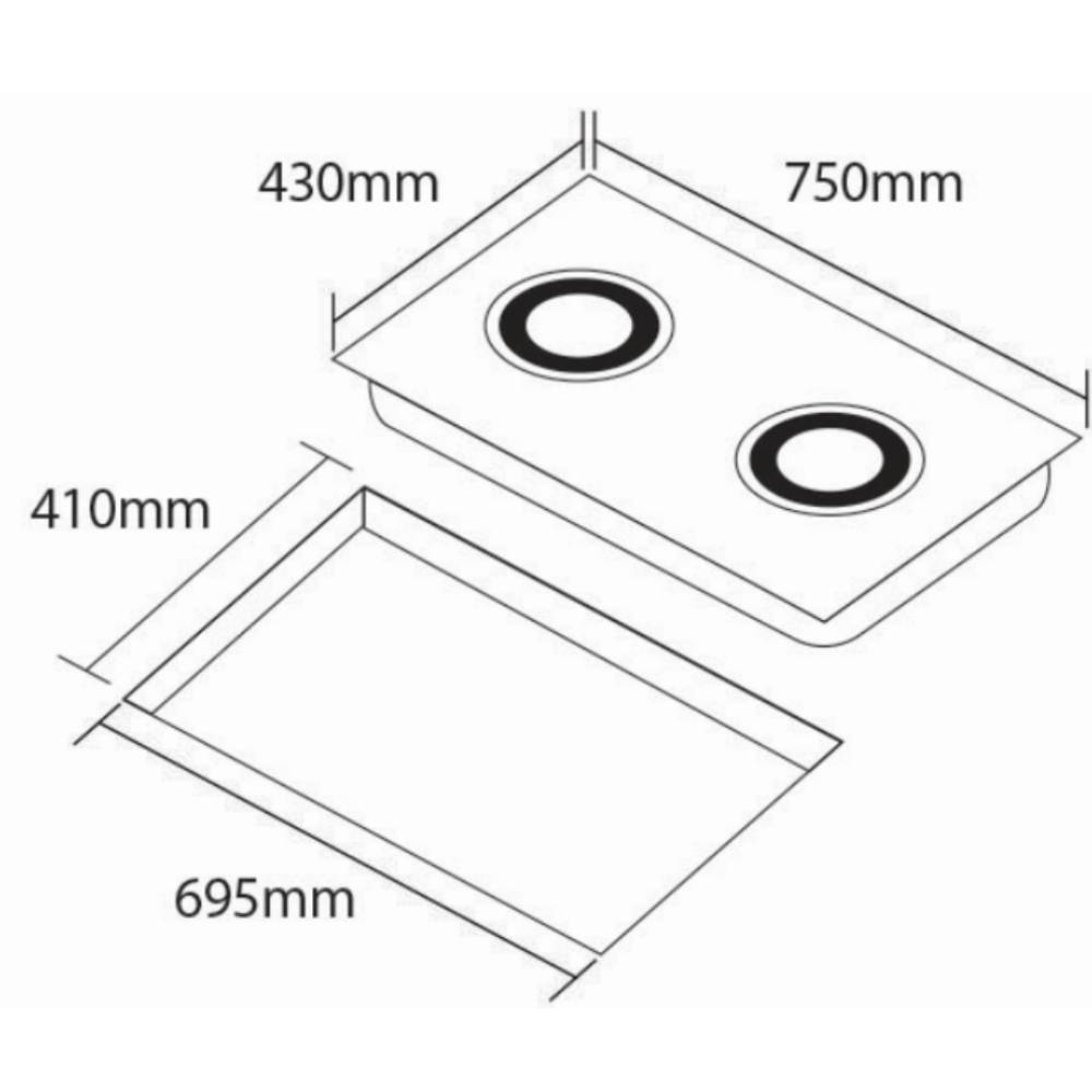 • Installation Size (WxD): 695 x 410 mm