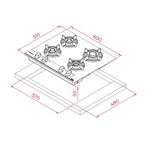 Teka Infinity G1 Gas on 4 Burners Glass hob